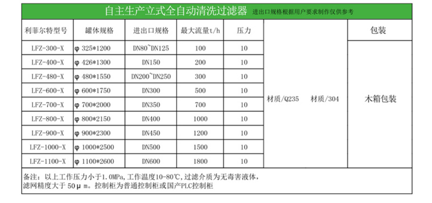 重力杂质刷式自清洗过滤器选型规格表